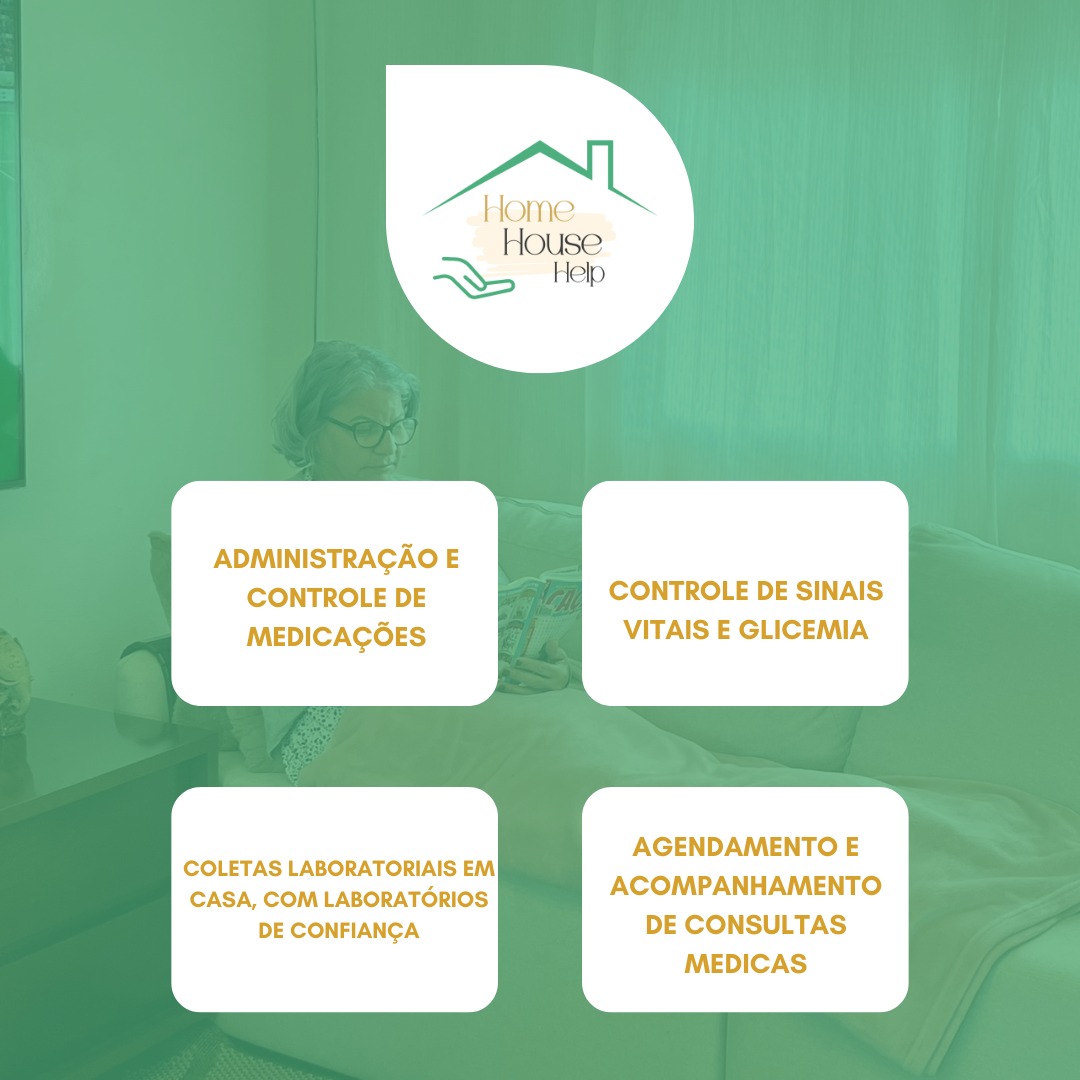 Nosso serviço foi desenhado para cobrir todas as necessidades do paciente e da residência. Cuidamos da saúde, da rotina diária e da administração da casa para garantir o bem-estar do paciente e a tranquilidade de toda a família.